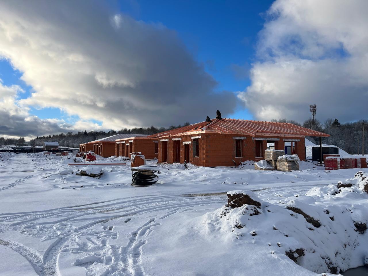 На фото — финальные работы по устройству крыш в нашем коттеджном посёлке.