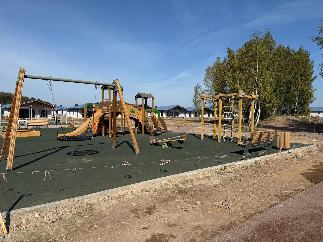 В нашем коттеджном поселке Лайт Парк, ежедневно растет строительная готовность и сегодня завершен монтаж милой и функциональной детской площадки