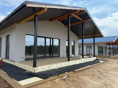 На фото — готовые светлые фасады коттеджей первой линии.Коттеджный поселок в завершенных фасадах, обретает свой окончательный облик.Что это значит для поселка:✔ Готовые тепловые контуры ✔ Единый архитектурный стиль всего поселка✔ Возможность начинать внутреннюю отделку
