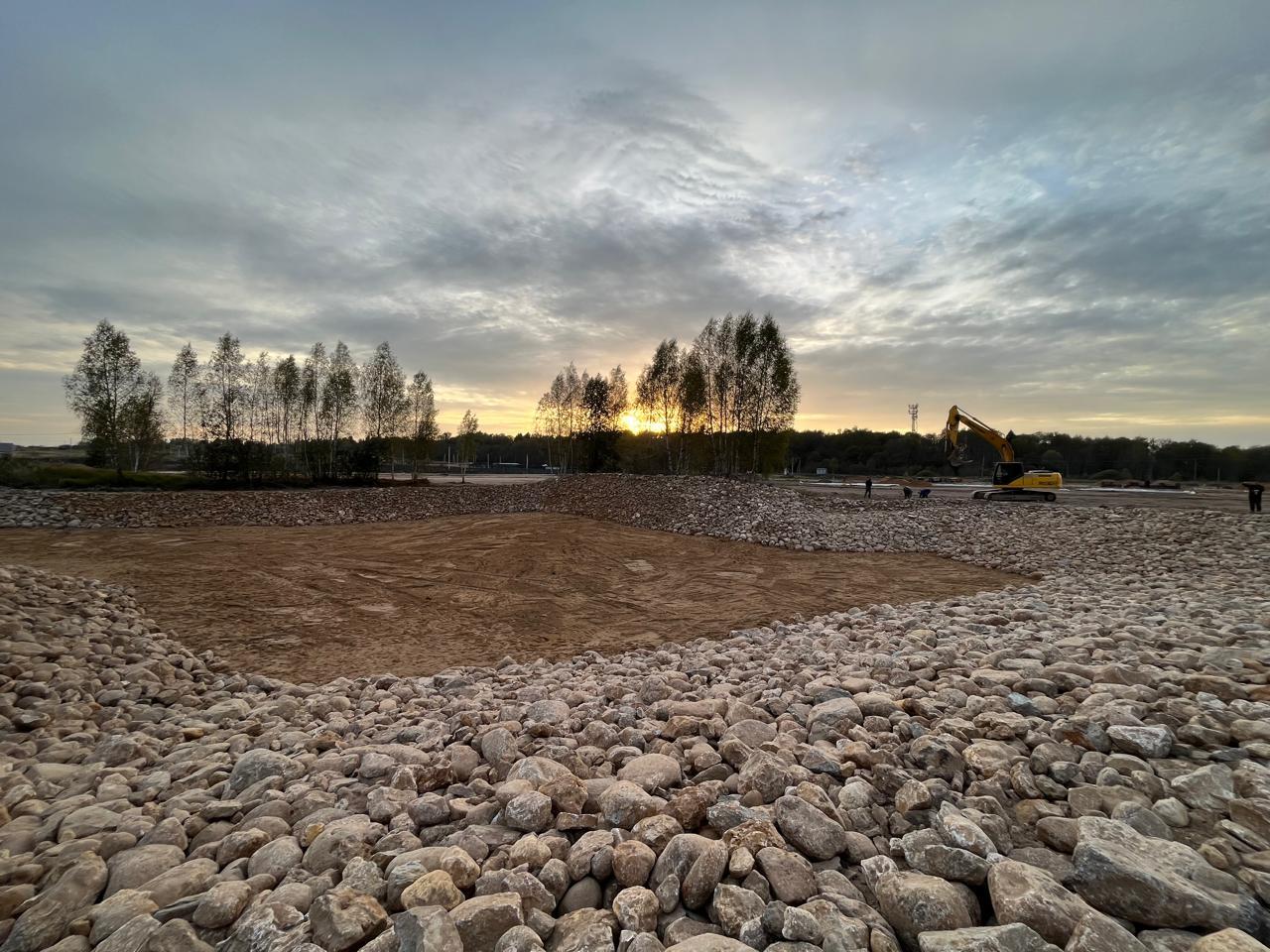 На стройплощадке коттеджного поселка стартовал первый этап благоустройства — формирование искусственного водоема.